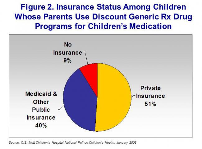 - 18% of parents have used discount generic drug programs for their children; over one-half of these children have private insurance.